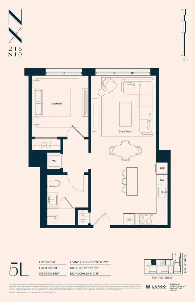 The complete offering terms are in an offering plan available from the Sponsor. File No. CD21-0045. The imagery used on the listings may not be representative of each unit and is provided for illustrative purposes only. Sponsor makes no representations or warranties except as may be set forth in the Offering Plan. Sponsor reserves the right to substitute materials, appliances, equipment, fixtures and other construction and design details specified herein as provided in the Offering Plan. All dimensions are approximate and subject to normal construction variances and tolerances. Square footage exceeds the usable floor area. Sponsor reserves the right to make changes in accordance with the terms of the Offering Plan. Pans and dimensions may contain minor variations from floor to floor. 215 N 10 Partners LLC; 215 N. 10th Street, Brooklyn, NY 11211. Equal Housing Opportunity